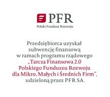 Informujemy, że nasz obiekt otrzymał subwencję finansową w ramach programu rządowego „Tarcza Finansowa 2.0 Polskiego Funduszu Rozwoju dla Mikro, Małych i Średnich Firm.